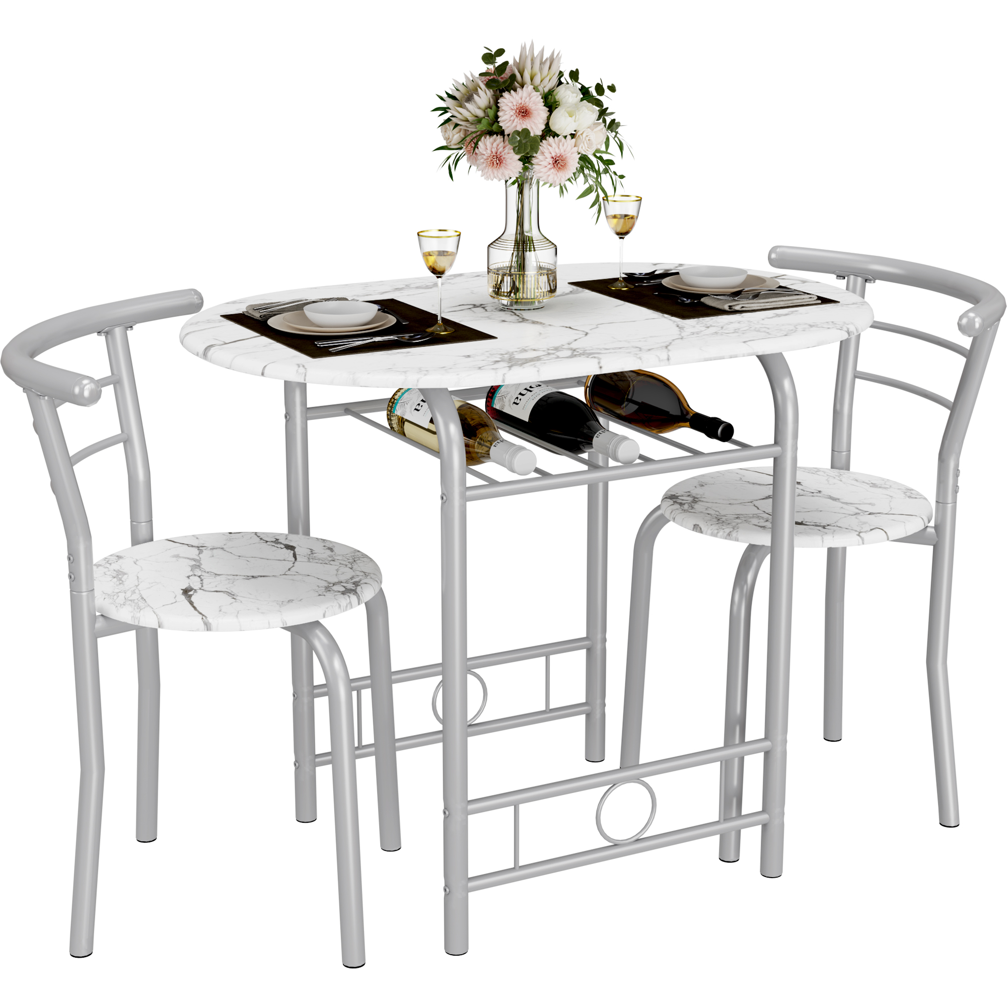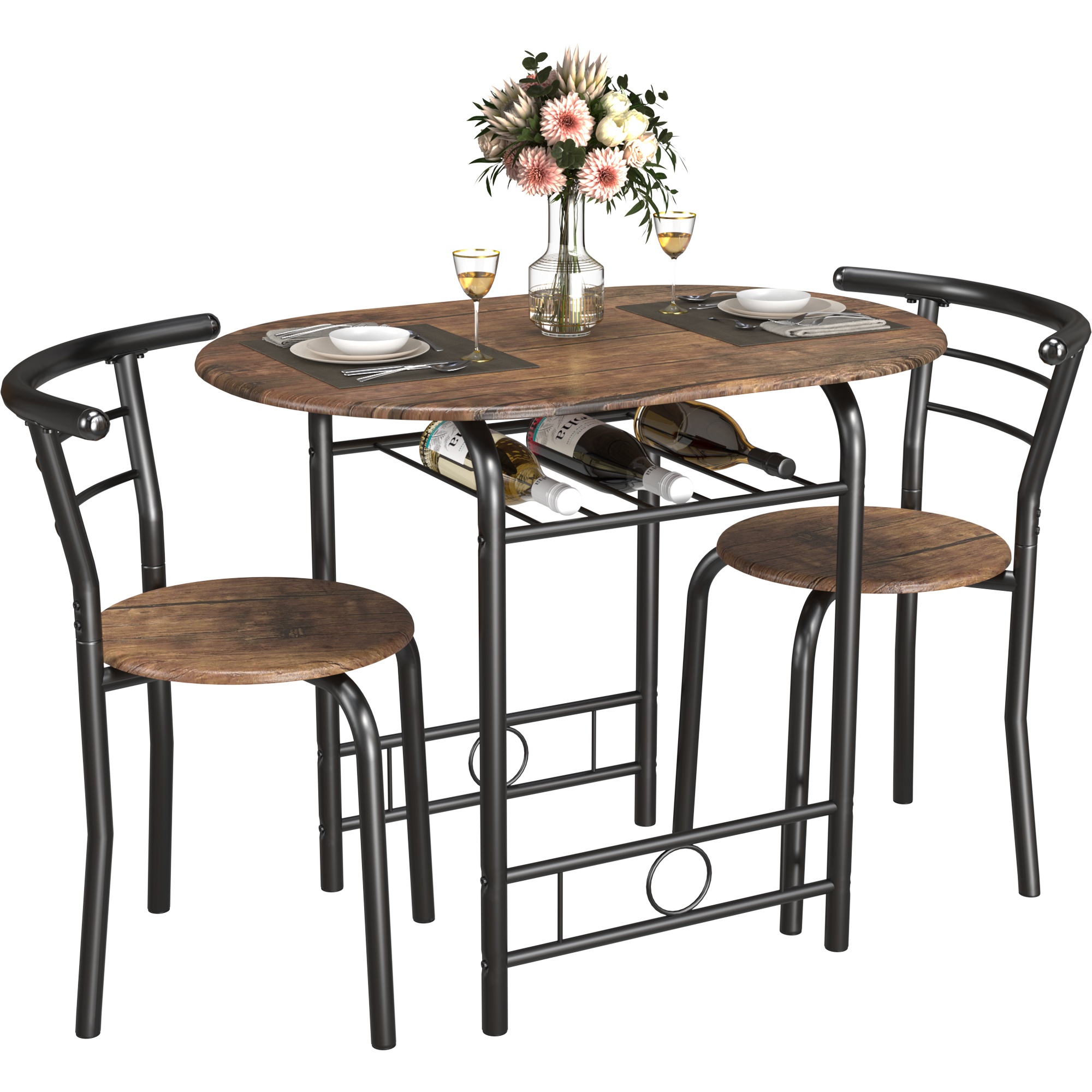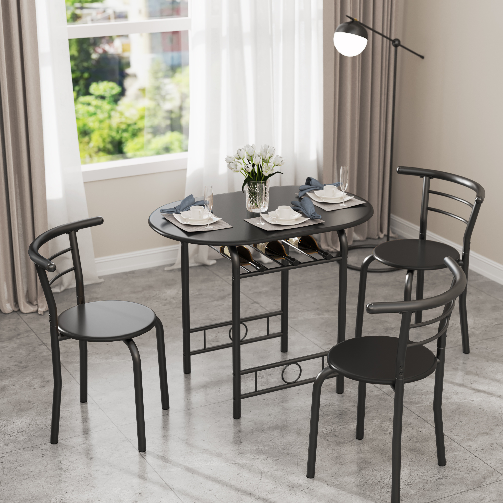 JUMMICO 3-Piece Wooden Round Table & Chair Set, Space Saving Kitchen...