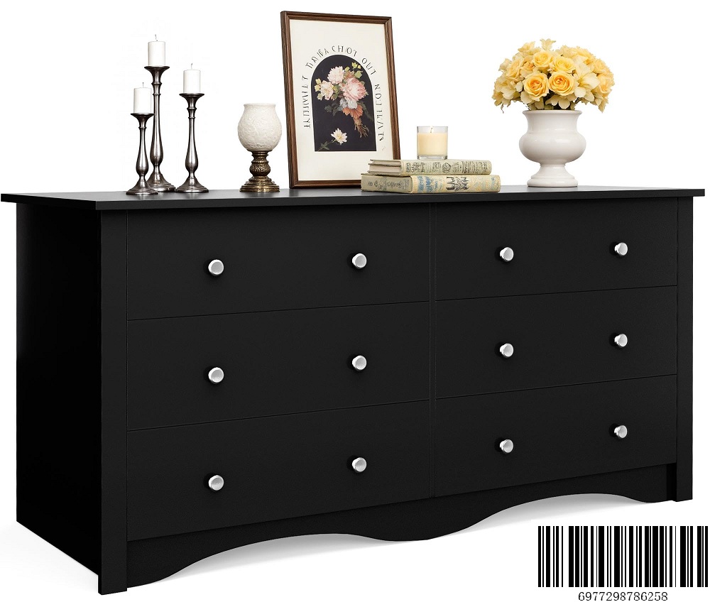 JUMMICO Black Dresser for Bedroom, 6 Wood Dresser Drawers...